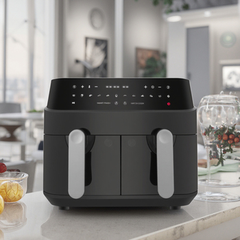 Nồi chiên không khí hai giỏ 9L có thể tùy chỉnh trong ba màu đen/xám điều khiển màn hình cảm ứng nấu hai mặt